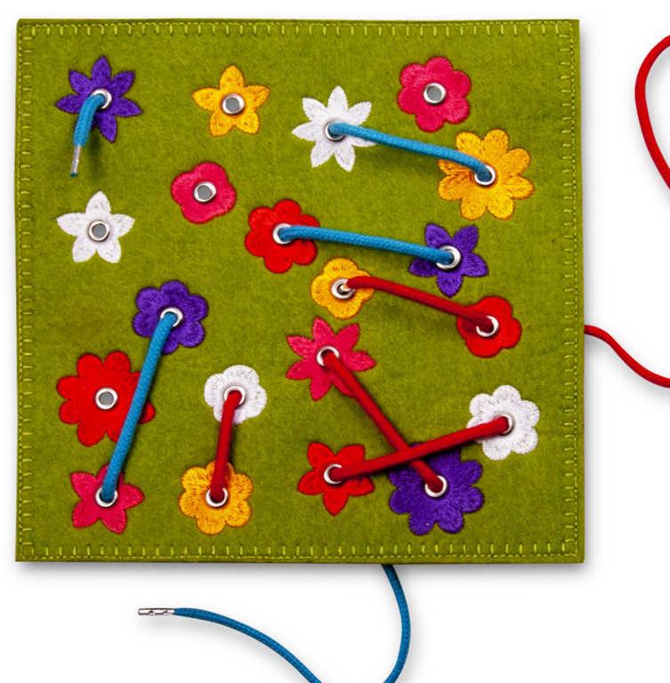 vždy nutné provléct vybranou kytičkou. K výhře ovšem nestačí jen umět navlékat, ale ovládat i trochu plánování a odhad. Protože lovit mohou děti jen tak dlouho, dokud jim stačí tkanička.