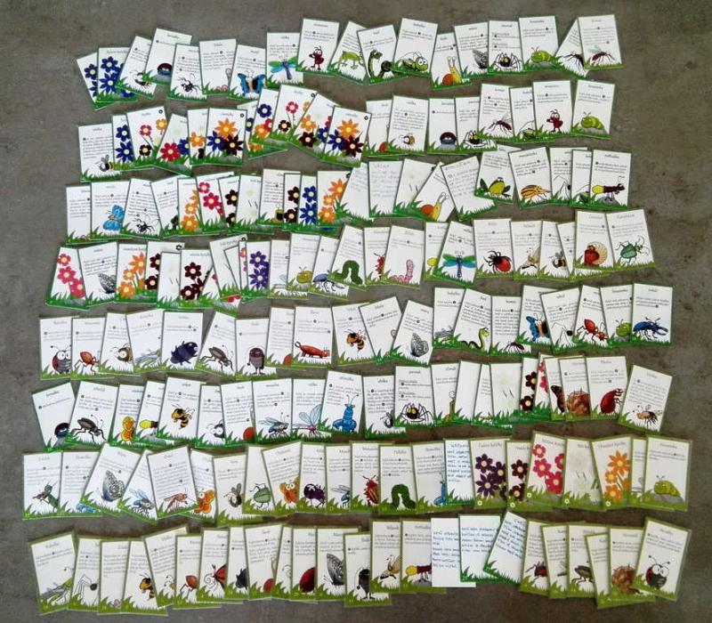Obsah balení: 31 karet zvířátek, 5 karet kytiček, 4 tkaničky, látkový herní plán, bodovací blok, pravidla, katalog zvířátek