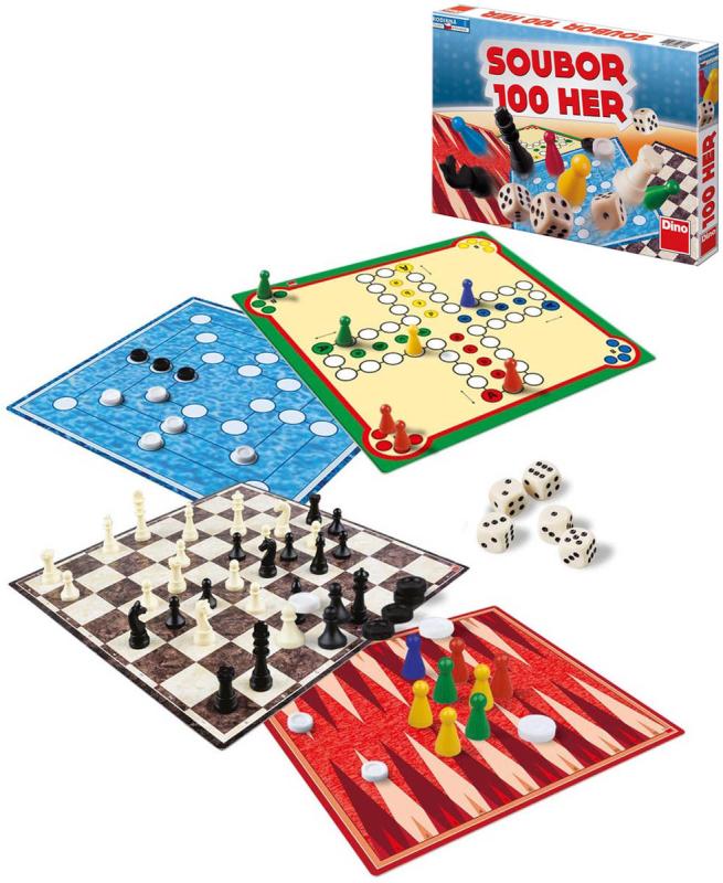 DINO Soubor 100 her (variant) 631250 - Soubor 100 her pro všechny věkové kategorie s mimořádně bohatou výbavou z kvalitních materiálů.Rozměry balení (š v h): 33,5 x 23 x 3,5cm