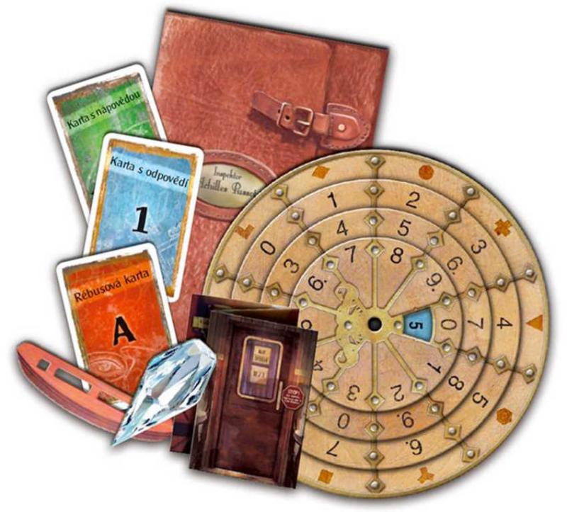 Obsah balení: 86 karet, 2 zvláštní předměty, 3 zapečetěné listy, zápisník, dešifrovací kotouč, pravidla