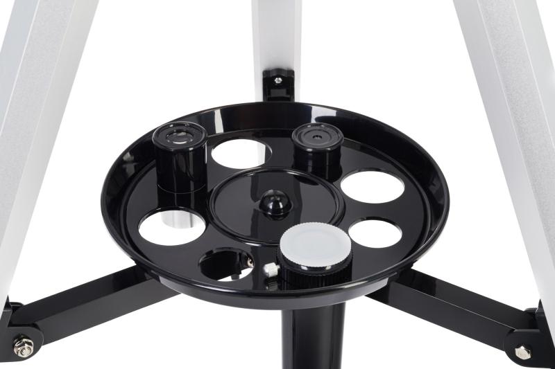 Díky manuálnímu alt-azimutálnímu ovládání je teleskop vhodný i pro začátečníky. Jednoduše ho nasměrujete pomocí vidlice s aretačním knoflíkem na svislé ose. Hliníkový stativ s praktickou přihrádkou na příslušenství umožňuje pohodlné pozorování bez nutnosti držet dalekohled v ruce. Sada obsahuje 3 okuláry s rozdílnými ohniskovými vzdálenostmi, okulár pro vzpřímený obraz, Barlowovu čočku, diagonální zrcátko a další šikovné příslušenství.Specifikace