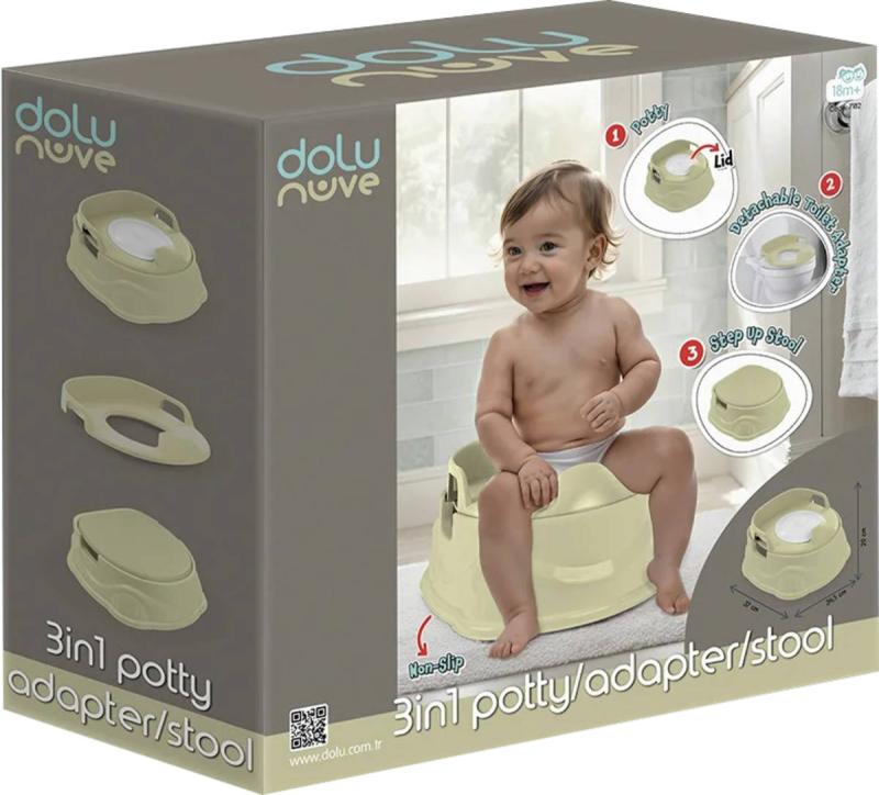 DOLU Nočník / sedátko na WC / baby dětská stolička 3v1, ve světle zelené barvě, toaleta pro nejmenší děti. Velikost 37 x 20 x 34,5cm. Protiskluzová úprava.Tento praktický nočník 3 v 1 je díky svým funkcím dokonalým nočníkem pro nácvik chození na toaletu. Lze použít jako nočník, sedátko na WC nebo stoličku. Zpočátku slouží jako pohodlný nočník. Jakmile vaše dítě vyroste z nočníku, můžete sejmout sedátko a používat nočník jako stoličku a sedátko jako redukci WC prkénka. Nočník je vybaven protiskluzovými nožičkami, které zabraňují uklouznutí, a šikovné rukojeti usnadňují jeho přemisťování.