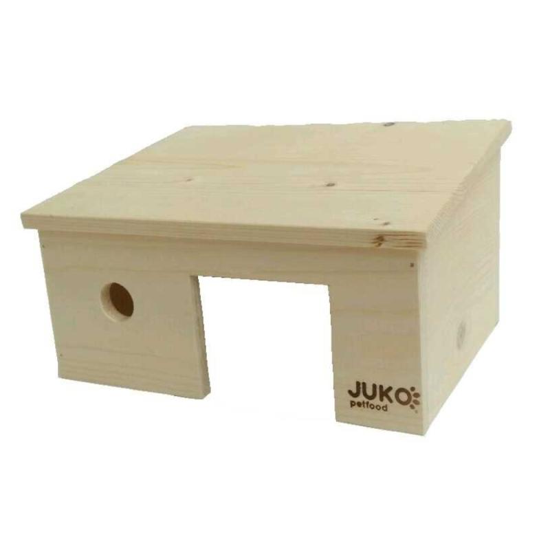 Domeček s šikmou střechou která lépa navozuje lépe pocit skutečného domu. Sklon není velký, zvířátko ji tedy i přesto může používat.