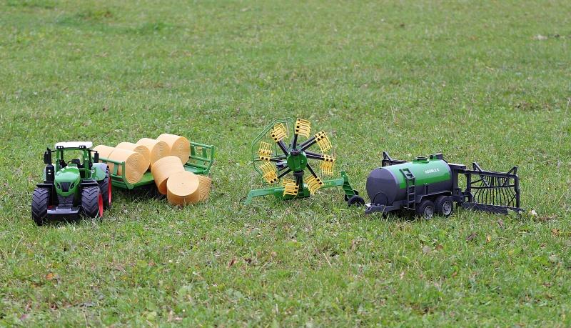 K tomuto modelu je možné použiť prívesný vozík a ďalšie komponenty BRUDER. Tento model je vhodný na prevádzku v interiéri aj exteriéri, ale nie je určený na prevádzku vo vlhku, preto odporúčame elektroniku ošetriť sprejom nanoprotech. Traktor dokáže diaľkovo ovládať aj príslušenstvo, ako je valník a obracač sena.