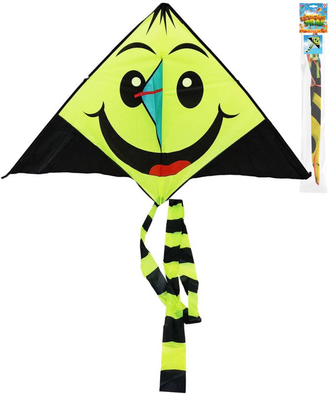 Barevný nylonový drak s motivem smíška bude ve výšce nepřehlédnutelný. Rozpětí draka je cca 140cm. Barvy se mohou lišit. Součástí draka je vodící šňůra s úchytem. Baleno v sáčku.