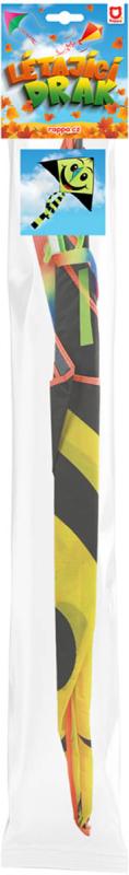 Drak létající smíšek 140cm žlutočerný smajlík s třásněmi nylonový