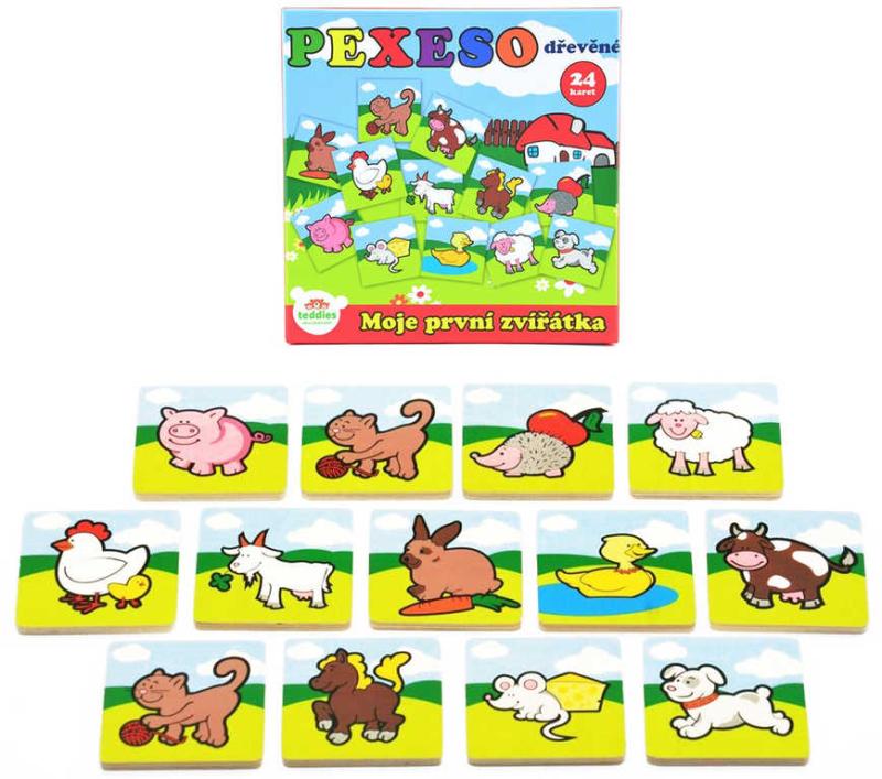 Tradiční, klasická, společenská hra pexeso - děti si tříbí svůj postřeh a paměť tím, že si pamatují nejen náměty obrázků, ale i místo, na kterém kartička leží. Klasická hra pro všechny věkové kategorie, při