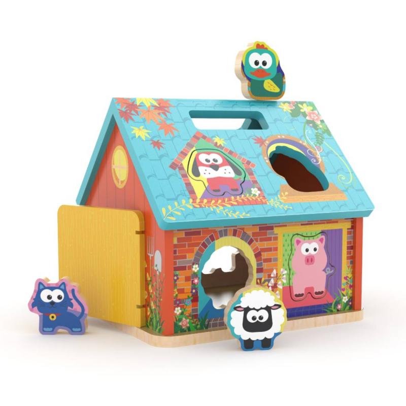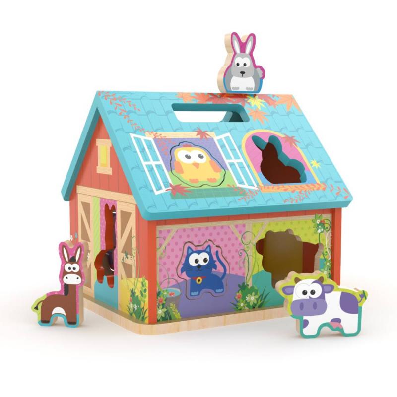 Objev kouzlo života na farmě! Tato roztomilá dřevěná vkládačka ve tvaru farmářského domečku přináší dětem zábavný způsob, jak se učit tvary, zvířátka a rozvíjet jemnou motoriku. Každý dílek má své místo – stačí ho správně vložit do otvoru ve stěně domečku.