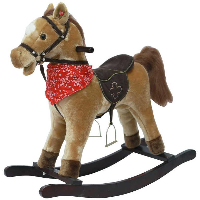 DŘEVO Kůň plyšový houpací 71cm hnědý řehtá na baterie Zvuk