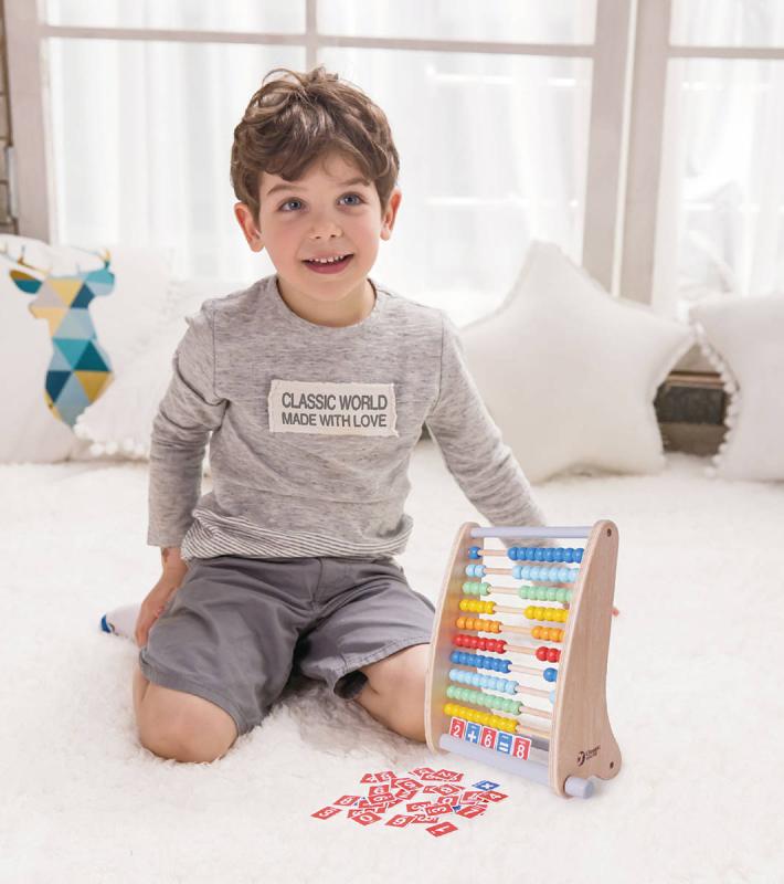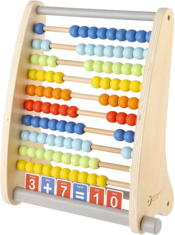 Barevné dřevěné počítadlo s 10 řadami korálků představujících čísla je klasickou hračkou, kterou ocení každý učitel matematiky. Podporuje logické myšlení a pomáhá při prvních početních úkolech. Hračka pomáhá vykonávat různé činnosti a zároveň rozvíjí motoriku při pohybu pohyblivých prvků. Počítadlo je vhodné pro individuální učení, ale najde uplatnění i v mateřských a základních školách.