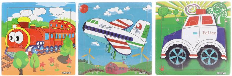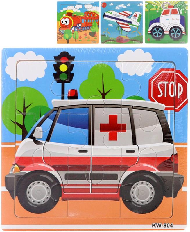 DŘEVO Puzzle dopravní prostředky vkládací na desce 9 dílků 4 druhy