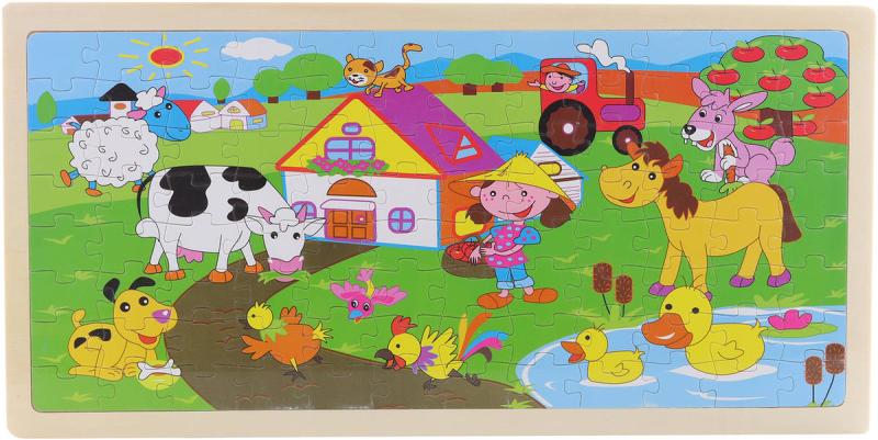 DŘEVO Puzzle farma 96 dílků skládačka na desce (dřevěná hračka)