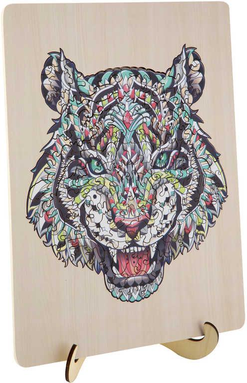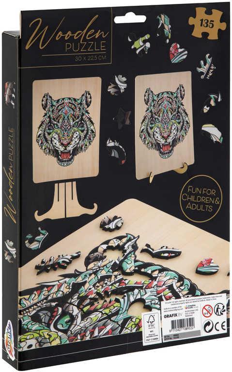 DŘEVO Puzzle obrysové na desce Tygr 135 dílků set skládačka se stojánkem