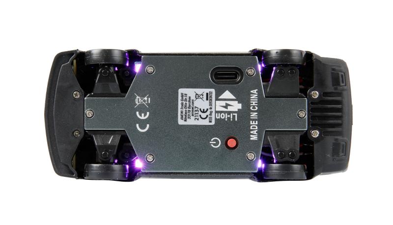 Citlivé ovládací prvky reagují přesně na pokyny dálkového ovladače, umožňují plynulé řízení a dávají prostor pro precizní manévry. Bezporuchový systém na frekvenci 2,4 GHz zajišťuje spolehlivý přenos signálu bez rušení. LED osvětlení doplňuje vizuální dojem - přední a zadní světla svítí nepřetržitě, osvětlení podvozku lze zapnout podle potřeby a vytvořit tak atraktivní efekt během jízdy.