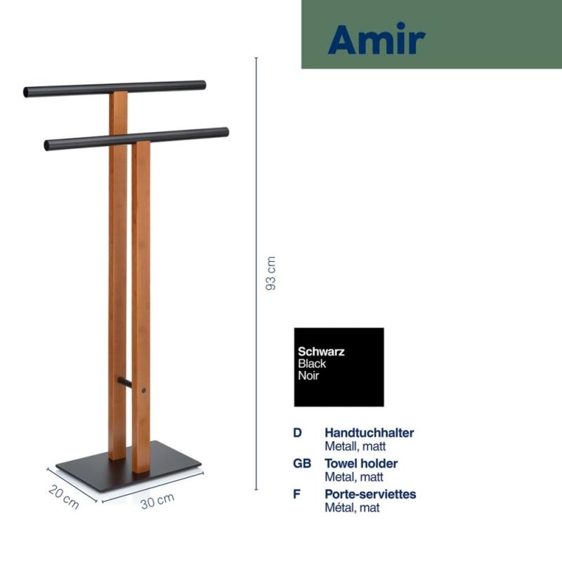 Držák na ručníky Amir kov/bambus černá/hnědá 30x20x93 cm