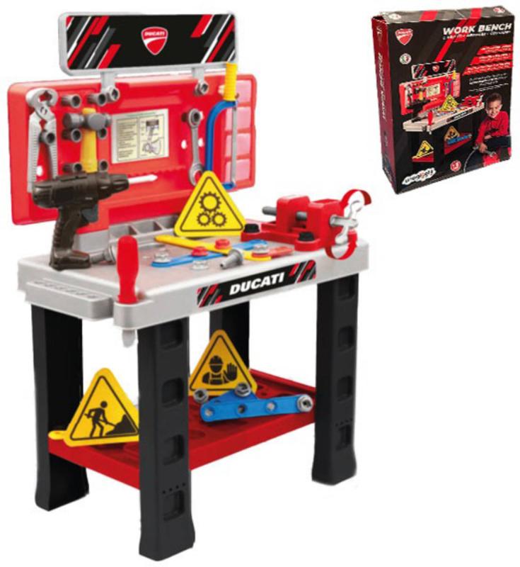 Pracovní stůl ponk v licenci Ducati, o velikosti 50 x 35 x 75cm. Součástí dětské plastové nářadí (celkem 30ks). Malý kutil.Tato sada je ideální pro každého malého kutila a mechanika, který se chce cítit jako dospělý a pomáhat s opravami. Realistický design v licenci Ducati je ideální pro každého malého kutila.