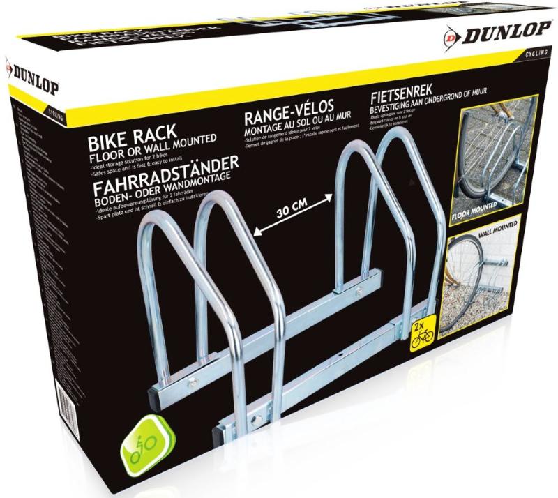 Tento stojan pre dve bicykle od značky Dunlop je vyrobený zo zliatiny hliníka, čo zabezpečuje jeho ľahkosť a odolnosť. Stojan je možné jednoducho pripevniť ako na stenu, tak k zemi, čo poskytuje flexibilitu pri jeho umiestnení.Špecifikácie: