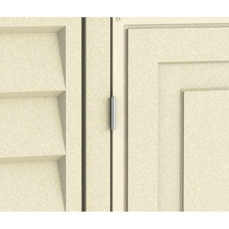 Dveře jsou vybaveny dvojitým otvorem, který výrazně usnadňuje přístup do domku. Pro zvýšení bezpečnosti lze dveře dovybavit visacím zámkem, což ochrání uložené věci před nepovolanými osobami.