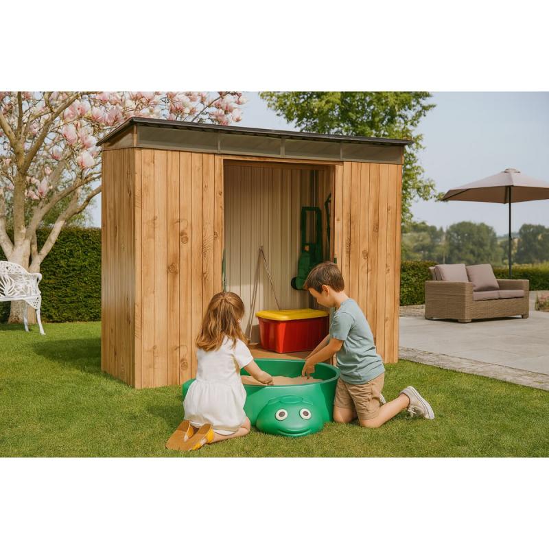 Kovový zahradní domek na nářadí s rovnou střechou a světlíkem Duramax Pent Roof Skylight. Nevyžadující údržbu z ocelového, žárově pozinkovaného, extrémně odolného plechu s práškovým nástřikem, v moderním designu. Odolný vůči počasí a s velmi dlouhou životností. Dvoje velké posuvné dveře a vysoký dveřní otvor umožňují pohodlný přístup. Jednoduchá montáž s podrobným návodem a vyobrazením zabere cca 3 hodiny (nutné 2 osoby). Včetně dveřních úchytů (uzamykatelné/zámek není obsažen v dodávce). Světlík nad vstupními dvěřmi propouští sluneční světlo do interiéru a orientace uvnitř je tak snadnější i za zhoršených viditelnostních podmínek.