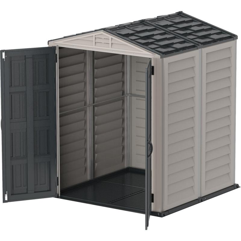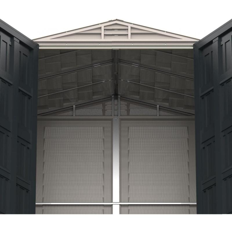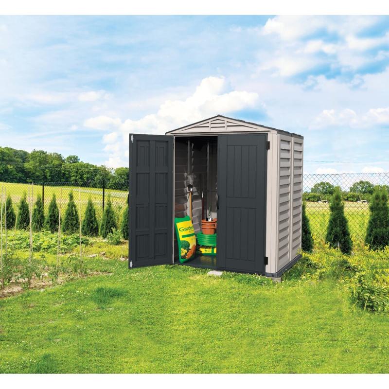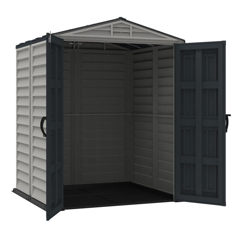 Praktický vinylový zahradní domek o velikosti 2,8 m² s podlahovým panelem, odolný vůči povětrnostním vlivům a vybavený širokými dveřmi pro snadný přístup.Vinylový zahradní domek Duramax YardMate Plus nabízí kompaktní, ale dobře využitelný prostor o velikosti 2,8 m², který je ideální pro uskladnění zahradního nářadí, sekaček, křovinořezů, hraček, sportovních potřeb či palivového dřeva.