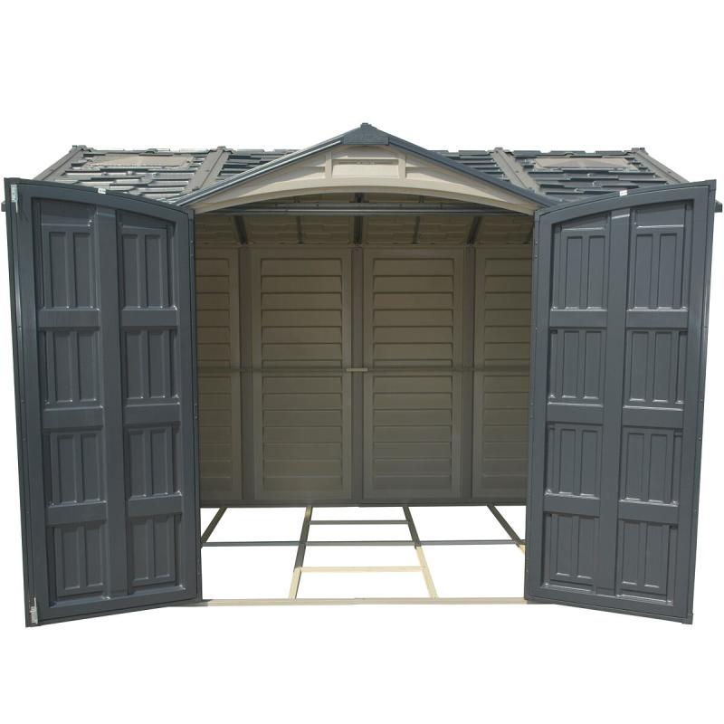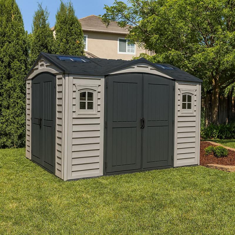 Záhradný domček ApexPro s vnútornými rozmermi 316 x 234 cm patrí k tým väčším záhradným domčekom. Vnútorný priestor je veľký a hlavne skvele využiteľný. Tento záhradný prístrešok pohodlne pojme gril aj s palivovým drevom, športové náradie či záhradné náradie vrátane krovinorezu alebo kosačky na trávu. Voľne sa zmestí aj záhradný nábytok, ak ho chcete v zime ochrániť pred snehom. Plastové domčeky ApexPro sa od ostatných líšia hlavne tým, že ich výrobca Duramax osadil hneď dvomi dverami. Vchádzať dovnútra tak môžete zpredu aj zboku. To oceníte obzvlášť v momente, keď domček naplníte až po strechu – nechcete predsa pol hodiny vyskladať veci von, aby ste sa dostali ku hrabľom. Obe dvojkrídlové dvere je možné dovybaviť visiacim zámkom, čo zabezpečí uskladneným veciam dostatočnú ochranu a bezpečie. Vnútorný priestor záhradnej kôlne ApexPro 7,6 m² je dobre osvetlený vďaka dvom oknám v čelnej časti a dvom svetlíkom na streche. Prúdenie vzduchu zabezpečujú štrbinové otvory v bočných štítoch domčeka, ktoré sú samozrejme navrhnuté tak, aby dovnútra nezatekalo. Dizajn domčeka Duramax ApexPro aj jeho sivá-antracitová farba boli navrhnuté tak, aby domček vyzeral atraktívne ako v modernej, tak tradičnej záhrade.