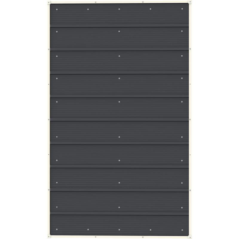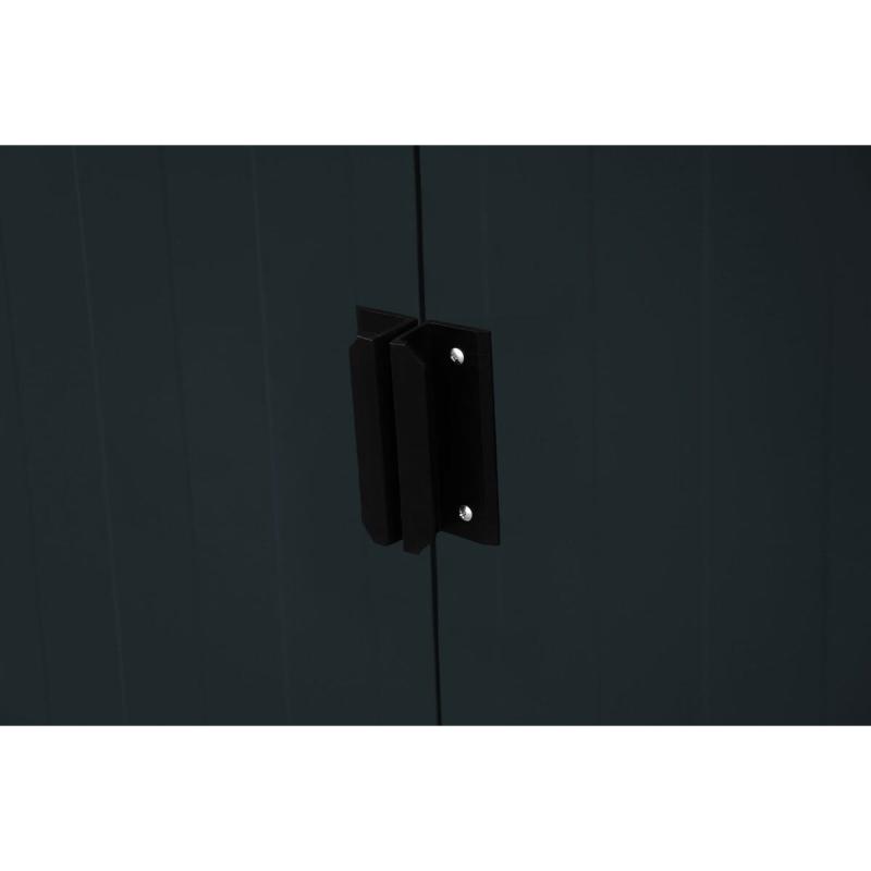 Montáž je jednoduchá a zabere přibližně 3 hodiny, doporučujeme ji provádět ve dvou osobách. Součástí jsou dveřní úchyty, avšak zámek není součástí balení. Barva domku je elegantní antracitová.