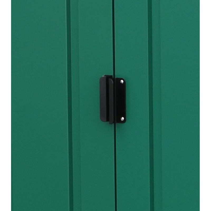 Nevyžadující údržbu z ocelového, žárově pozinkovaného plechu s práškovým nástřikem, v moderním designu. Odolný vůči počasí a s velmi dlouhou životností. Dvoje velké posuvné dveře a vysoký dveřní otvor umožňují pohodlný přístup. Jednoduchá montáž s podrobným návodem a vyobrazením zabere cca 5-6 hodin (nutné 2 osoby). Včetně dveřních úchytů (uzamykatelné/zámek není obsažen v dodávce).