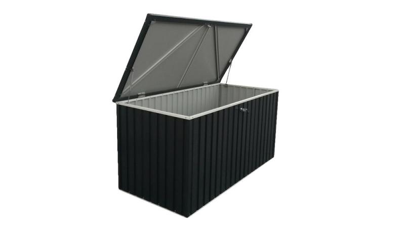 Pokud hledáte prostorné a odolné řešení pro uskladnění zahradního vybavení, tento zahradní úložný box nabízí objem 1450 litrů, který pojme nejen nářadí, ale i skládací nábytek, gril nebo sportovní potřeby. Jeho konstrukce je vyrobena z žárově zinkovaného ocelového plechu s práškovým nástřikem v antracitové barvě, což zajišťuje dlouhodobou ochranu proti korozi a povětrnostním vlivům. Výrobce poskytuje na prorezivění záruku 15 let, což potvrzuje kvalitu a odolnost materiálu.