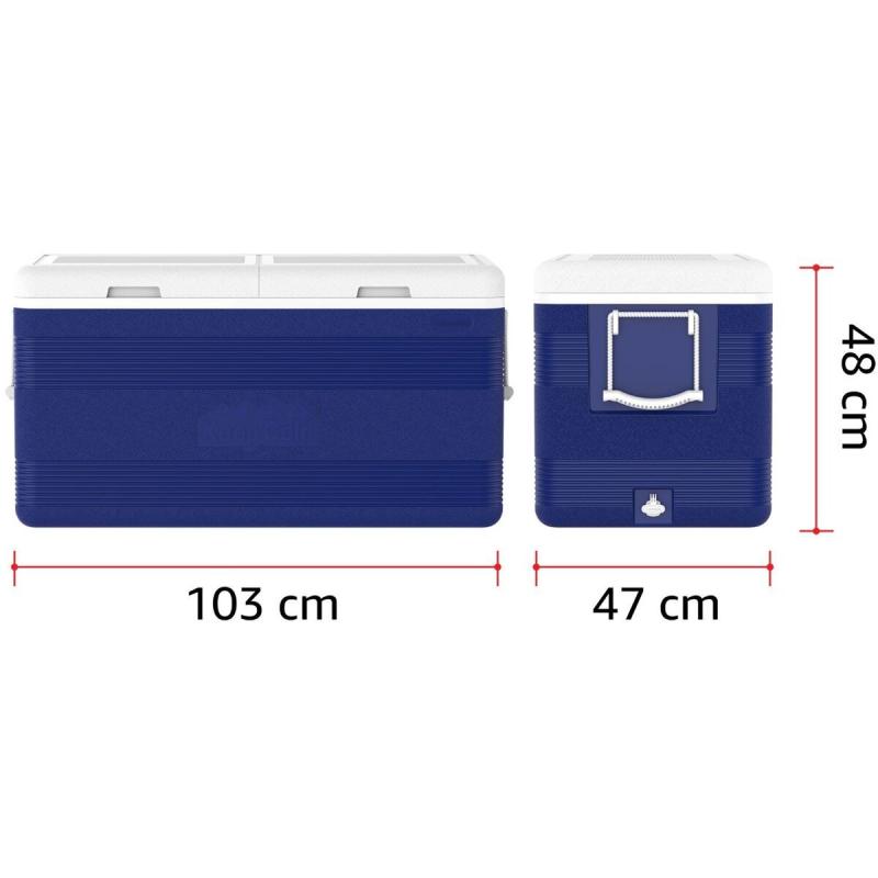 Obrovský pasivní termoizolační box COSMOPLAST Keep Cold DeLuxe s objemem 150 litrů je navržen tak, aby udržel obsah chladný až po dobu 24 hodin bez nutnosti použití chladicích vložek. Díky silné polyuretanové izolaci je možné prodloužit dobu chlazení až na 6 dní při použití ledu. Je ideální pro outdoorové aktivity, jako jsou výlety, kempování, grilování nebo plážové pobyty. Box je vybaven masivními rukojeťmi pro snadné přenášení a praktickým kohoutkem pro vypuštění vody. Navíc umožňuje skladovat až 1,5litrové lahve ve svislé poloze.Hlavní výhody termoizolačního boxu: