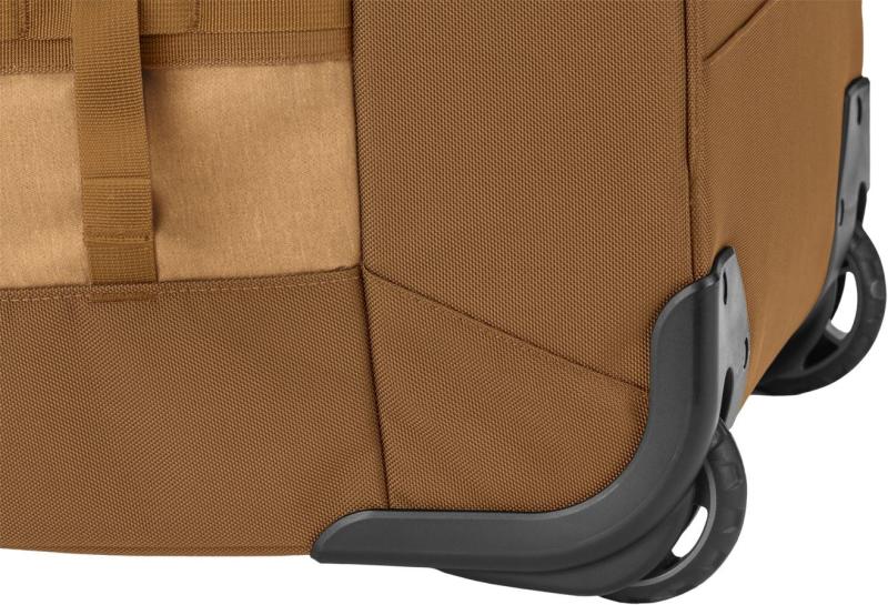 Vozit jej můžete snadno po městě i v náročnějším terénu díky dvěma robustním kolečkům a plastové opěrce, která zvyšuje stabilitu zavazadla. Ramenní popruhy jsou ergonomicky tvarované, polstrované a vybavené prodyšnou síťovinou, navíc je lze schovat do kapsy na zip, pokud je nepotřebujete.