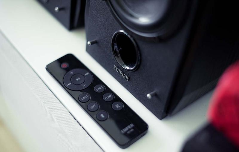 Reproduktory můžete ovládat pomocí přiloženého dálkového ovladače na baterie. Funguje ve spojení s infračerveným portem, který se nachází na přední straně reproduktoru. Můžete upravovat hlasitost, přepínat vstupy, ztlumit reproduktory a ovládat přehrávání prostřednictvím připojení Bluetooth - to vše na dosah ruky. Snadno se používá a padne vám do dlaně pro maximální pohodlí.