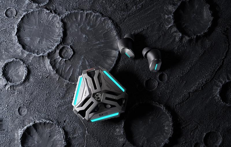 Ergonomický tvar sluchátek je navržen tak, aby pohodlně seděl v uších bez nepříjemného tlaku, což umožňuje pohodlné nošení i během dlouhých herních nebo pracovních sezení. Minimalistický vzhled s kovovým povrchem zaujme příznivce moderního a futuristického designu.