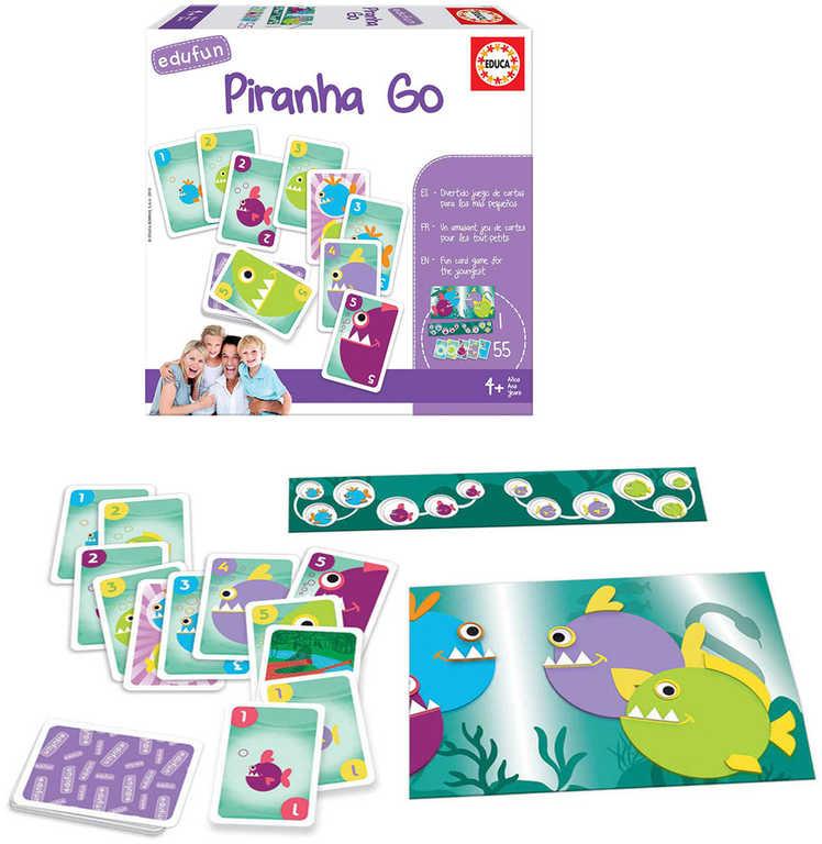 Zábavná desková hra s kartami – EDUCA – Piraně je určena pro děti od 4 let. Cílem hry je zbavit se karet s piraňami dřív než ostatní hráči. Dávej pozor! Řeka je plná nebezpečí.Rozměry balení (š v h): 18,5 x 18,5 x 4,5 cm