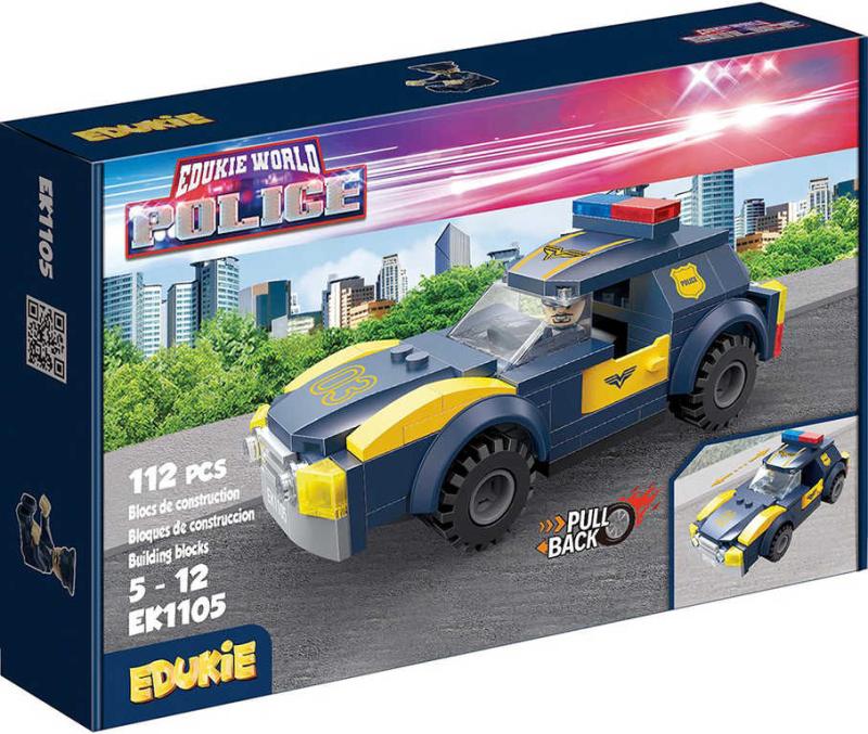 EDUKIE Policejní auto na zpětný chod set 112 dílků + figurka (stavebnice)