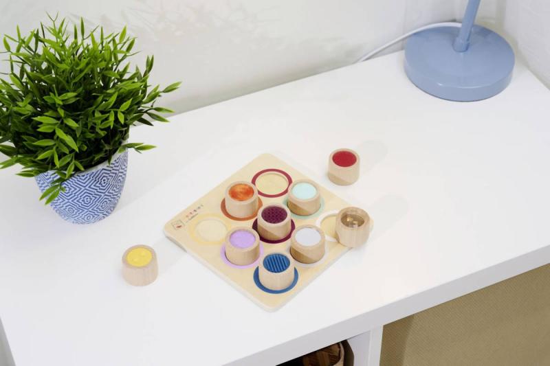 ***Vnímání je pro dítě důležitým smyslovým vývojem. Hra s různými povrchy a materiály podporuje hmat. Naše Montessori hmatová deska má 9 senzorických válců, ve kterých si dítě může osahat povrchy a textury. Montessori hmatová deska je vyrobena ze 100% bukového dřeva a překližky s certifikací FSC a je vhodná pro děti od 3 let.