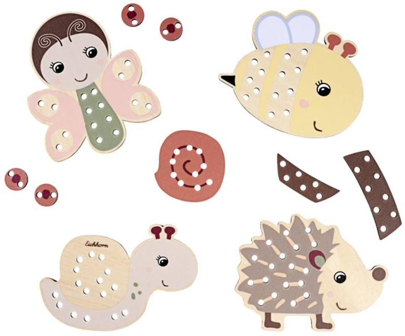 Dřevěná sada od Eichhorn je skvělou volbou pro nejmenší děti, které dělají své první krůčky ve vývoji jemné motoriky, koordinace a soustředění. S pomocí barevných a veselých zvířátek se může každé dítě bavit a zároveň učit, když navléká figurky na přiloženou šňůrku.