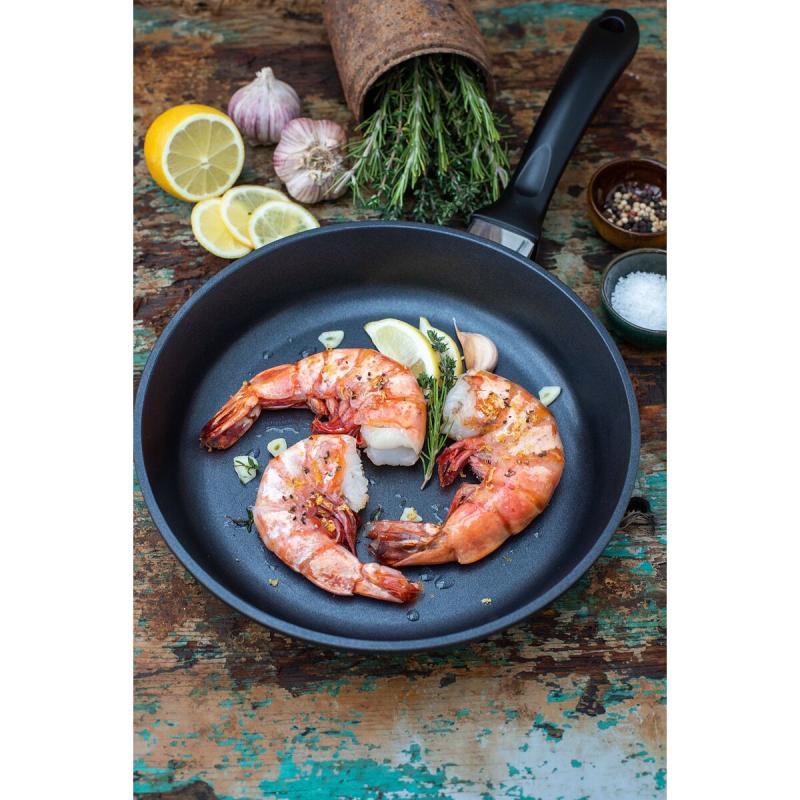 Pánev z litého hliníku s nepřilnavým povrchem ELODUR® Select, vhodná na všechny typy varných desek včetně indukce, snadno se čistí a umožňuje zdravé vaření s minimem tuku.Tato pánev představuje spolehlivého pomocníka pro každodenní přípravu jídel, která vyžadují rovnoměrné rozložení tepla a snadnou údržbu. Díky lití hliníku se teplo rozvádí rychle a rovnoměrně po celé ploše, což zajišťuje dokonalé výsledky při smažení i dušení.