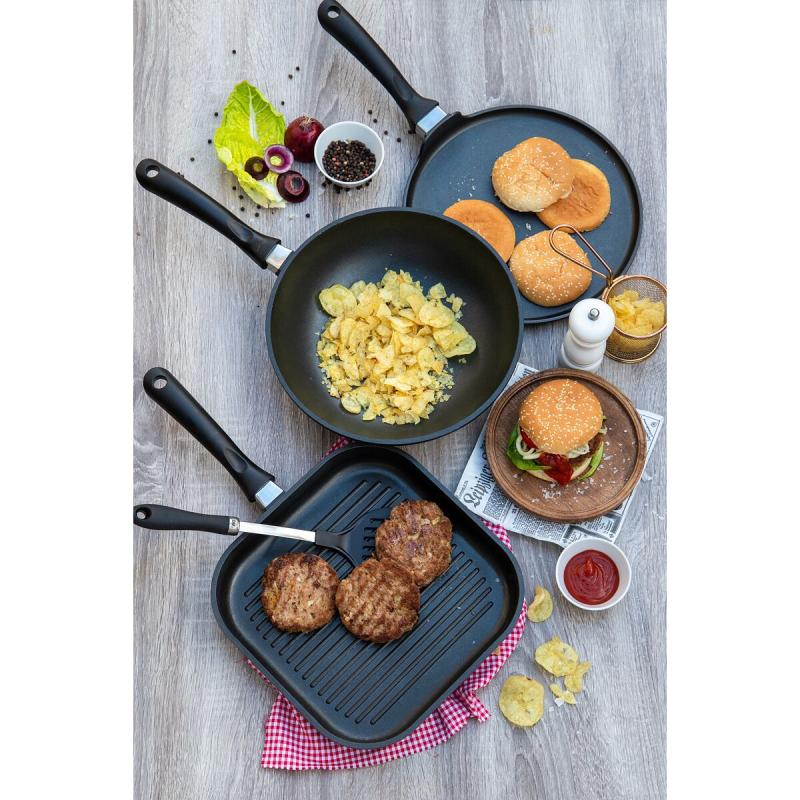 Pánev je ideální pro přípravu pokrmů s minimem tuku nebo zcela bez tuku, což ocení ti, kdo dbají na zdravý životní styl. Hodí se pro smažení steaků, masa, ryb, zeleniny, omáček i dalších jídel z různých kuchyní světa.