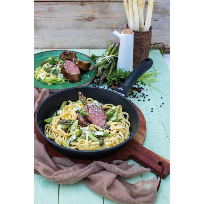 Pánev z litého hliníku s nepřilnavým povrchem ELODUR® Select, vhodná na všechny typy varných desek včetně indukce, snadno se čistí a umožňuje zdravé vaření s minimem tuku. Zobrazit celý popis