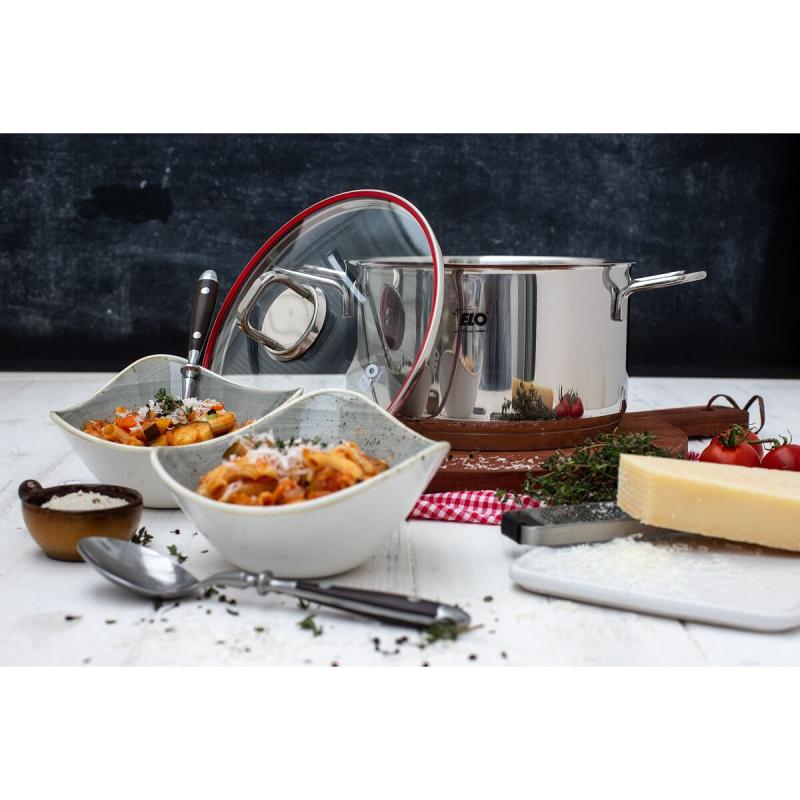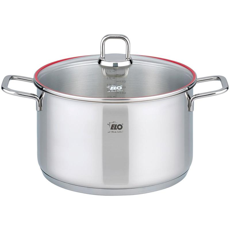 Sada hrnců od značky ELO nabízí praktické a funkční kuchyňské vybavení, které usnadní každodenní vaření. Lesklý červený silikonový kroužek zabraňuje kondenzaci a udržuje pracovní plochu v suchu, což oceníte při přípravě pokrmů bez nepořádku. Skleněné poklice jsou vybaveny ventilačním otvorem, který umožňuje kontrolované uvolňování páry, čímž přispívá k lepší kontrole vaření.