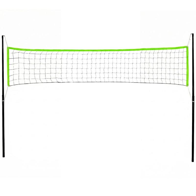 Plne rozmerná volejbalová sieť s pevnými oceľovými stĺpikmi a odolnou sieťovinou, kompletná sada vrátane lopty a príslušenstva pre okamžitú hru vonku aj na záhrade. zobraziť celý popis