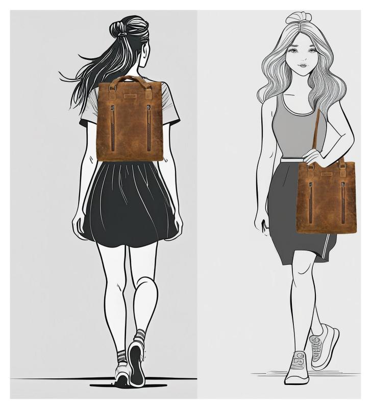 Použitý materiál z prvotriednej kože zaisťuje nielen príjemný vzhľad, ale aj dlhú životnosť a odolnosť proti bežnému opotrebovaniu. Dizajn batohu je navrhnutý tak, aby umožňoval viac spôsobov nosenia - je možné ho pohodlne nosiť ako batoh alebo kabelku, čo zvyšuje jeho univerzálnosť a prispôsobivosť rôznym situáciám.
