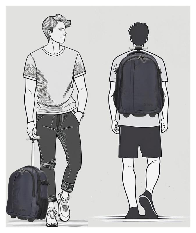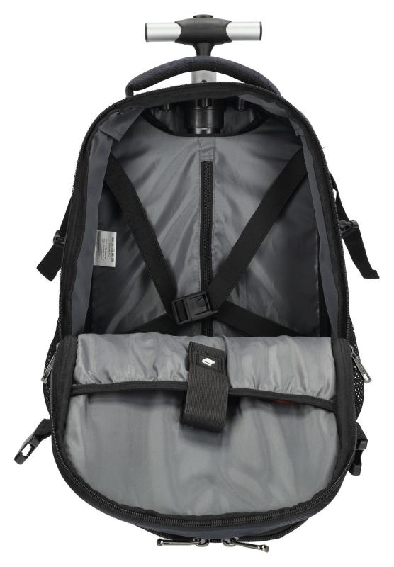 Pro pohodlný transport jsou k dispozici kvalitní kolečka a výsuvná rukojeť, díky nimž lze batoh snadno vést jako kufr. Skryté popruhy se při použití jako kufr nepletou a neruší celkový vzhled ani funkčnost zavazadla.