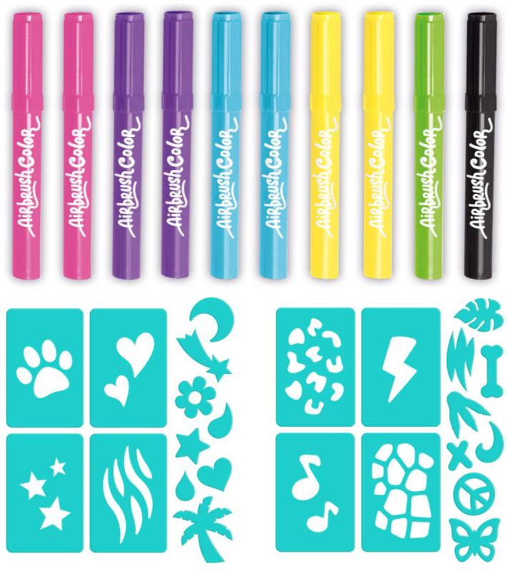 ***Náhradní originální barevné náplně do airbrushe. Součástí balení je 10 barev a 20 šablon. Vhodné pro děti od 6 let.