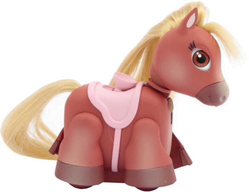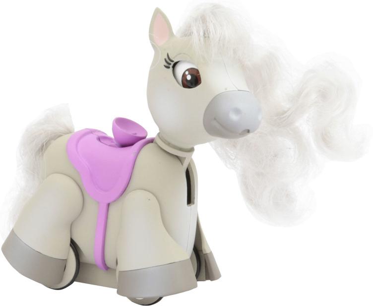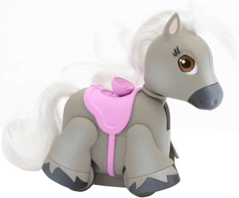 Herní set v devíti variantách provedení, obsahující poníka s doplňky. Poník má na zádech tlačítko s čidlem a podle vašeho pohybu hýbe hlavou i ocáskem a chodí a navíc mrká očima. Součástí balení je vodítko, které lze připnout za uzdu a vzít tak poníka na procházku.Jsou jako živí. Jsou hraví. Jsou zábavní. A tentokrát to jsou poníci. Přitlačte na ně prstem a oni jako zázrakem ožijí. Podle pohybu vašeho prstu budou hýbat hlavou, ocáskem a budou chodit. Vezměte vodítko, přiložte ho k čumáčku a vezměte svého poníka na procházku. Sledujte, jak legračně hýbe nohama a mrká očima. A to není všechno. Váš zvířecí kamarád dokáže zvednout i mrkvičku. Žádné baterie. Jenom váš prst nebo vodítko. Sbírejte je a hrajte si s nimi. Mají opravdové hřívy a ocasy, které můžete česat. Vyberte si jednoho ze šesti poníků, nebo je mějte všechny. Hrací sady obsahují exkluzivního poníka a různé doplňky.