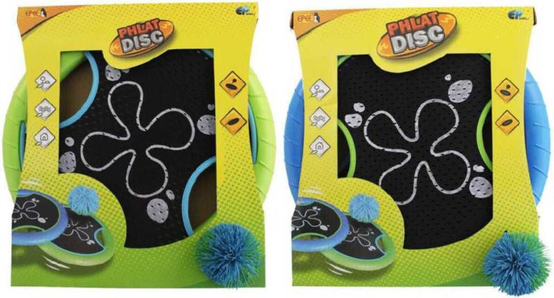 Phlat disc! Revoluční zábava doma i venku. Chlupatý míček a disk s textilním středem. Pinkejte si sami, pinkejte si mezi sebou. Přes síť nebo jenom tak. Trefujte se kamkoli, soutěžte, kdo dopinknete co nejdál. Prostě si pinkejte. Doma, v parku, na zahradě, na pláži, na koupališti. Určitě vás to chytne. A to není všechno. Můžete si s ním házet i jako s létajícím talířem. Je to prostě Phlat disc zábava. Hračka ve dvou barevných variantách.Rozměry balení (š v h): 30,5 x 30,5 x 3,5cm