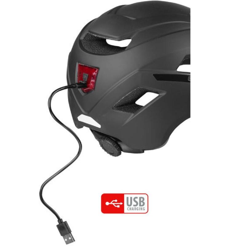 Přilba na kolo či brusle ETAPE City Light je moderní helma s integrovaným zadním LED světlem, díky kterému budete na silnici více viděni. Světlo obsahuje 6 super jasných červených LED diod s dobíjecí Li-ion baterií.Lze přepínat mezi 3 režimy - svícením a 2 typy blikání. Doba výdrže baterie je cca až 15 h dle typu používání. Konstrukce helmy je vytvořena technologií In-Mold pro maximální odolnost při pádu a absorpci nárazu. Helma nabízí 12 ventiláčních otvorů se síťkou proti hmyzu, přední integrovaný kšilt a upínací systém QFS, který umožňuje plynulou regulaci velikosti podle obvodu hlavy. Helma je vyrobená v moderním designu a využijí ji cyklisté, bruslaři či skateboardisti.