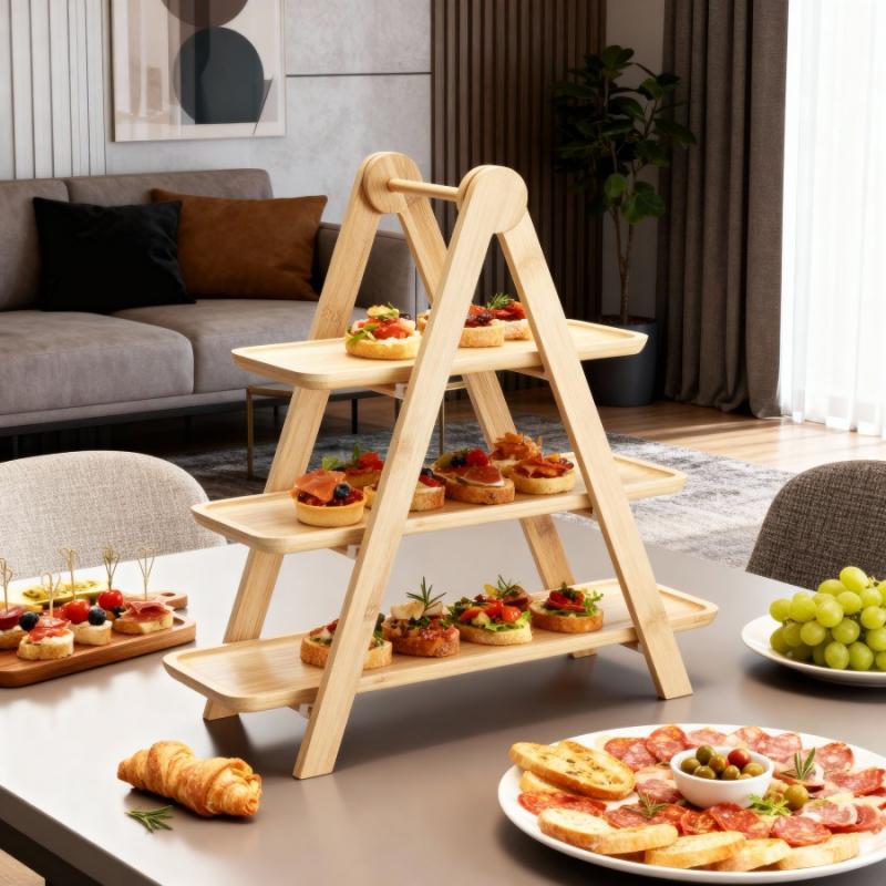 Díky kombinaci funkčnosti a přirozeného designu přinese tento etažér na váš stůl pořádek i estetiku. Vyzkoušejte jej a objevte, jak snadné může být elegantní servírování.