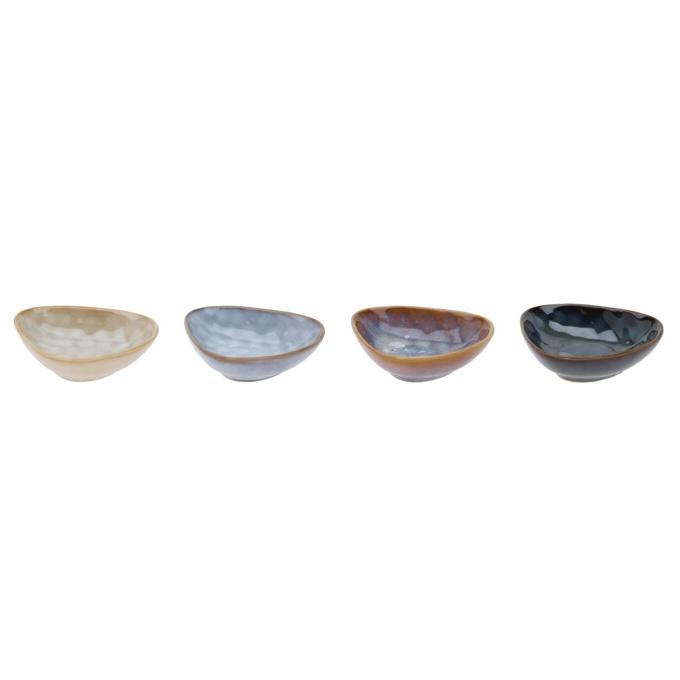 Sada čtyř kameninových trojúhelníkových misek v různých barvách je ideální pro servírování snacků, dipů nebo pochutin při stolování. Zobrazit celý popis