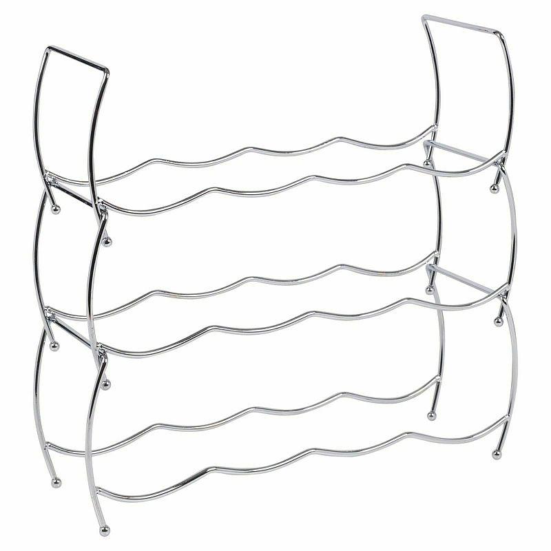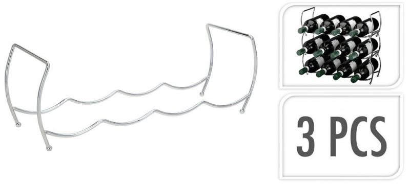 Flexibilní stojan z chromovaného kovu pojme až 12 lahví díky třem stohovatelným patrům. Stabilní konstrukce na čtyřech nožkách zajišťuje bezpečné uložení. zobrazit celý popis